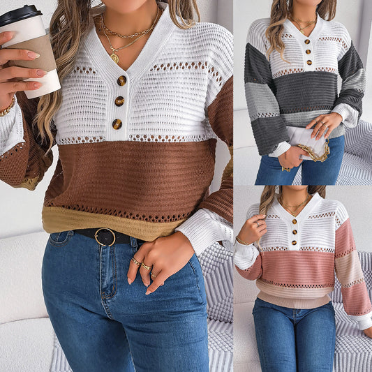 Chic Color-Blocking Knit Cardigan for Women with Turn-Down Collar and Fake Two-Piece Design, Short Sleeveless Sweater Coat